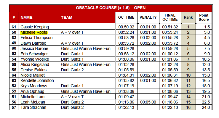 Event #1: Obstacle Course